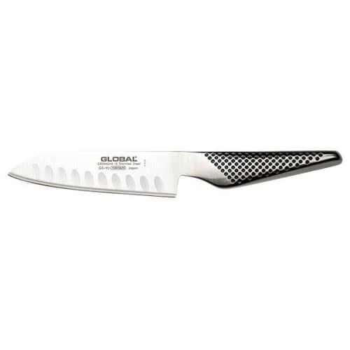 Global GS-90 13cm Fluted Santoku Knife – a smaller version of the G-80, this fluted knife is great for cutting up small vegetables and fruit.