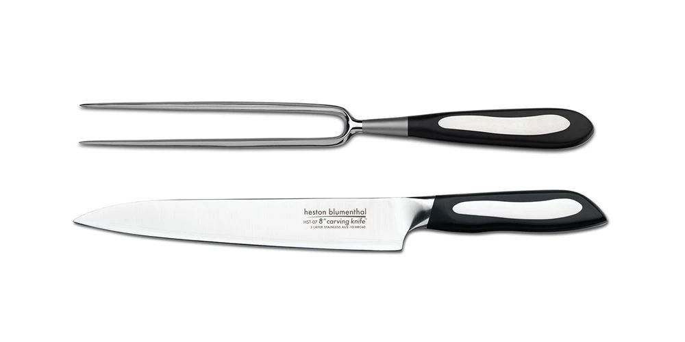 The Heston Blumenthal 3 Piece Carving Set is ideal for carving, slicing, and serving large cuts of meat, and even tougher vegetables.