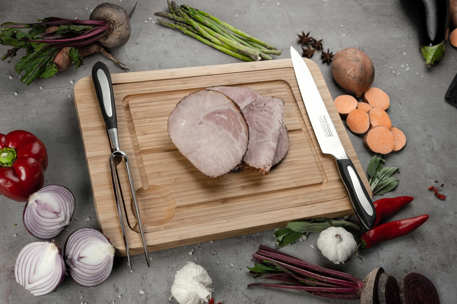 When it comes to cooking, everyone knows that a good carving set is one of the most useful, all-round tools to have in the kitchen, and this Heston Blumenthal 3 Piece Carving Set, including a carving knife, carving fork and bamboo carving board, is no exception to that.