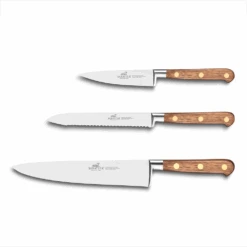 The Egide Kitchen set is part of the Egide collection from the Lion Sabatier® International signature brand. This set is made up of a Santoku Knife, 18cm honeycomb blade helps you to cut, slice raw food and a 13cm Mini-Santoku Knife helps you cut, slice raw food