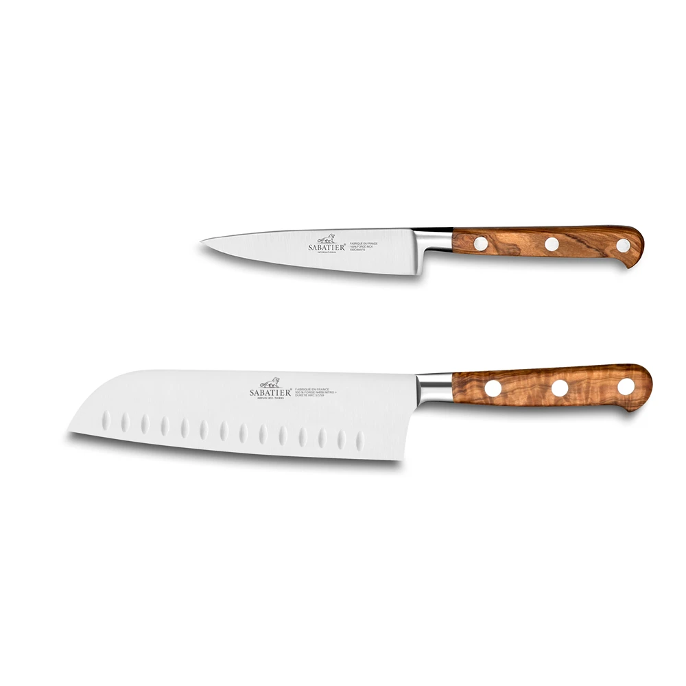 The Ideal Cuisine set is part of the Ideal collection from the signature brand Lion Sabatier®. This set is composed of a 18cm Santoku Knife, honeycomb blade for cutting, slicing raw foods and a 10cm Paring Knife with a sharp tip and a rigid blade for peeling, deseeding and easily carrying out all precision tasks