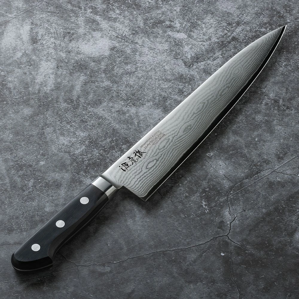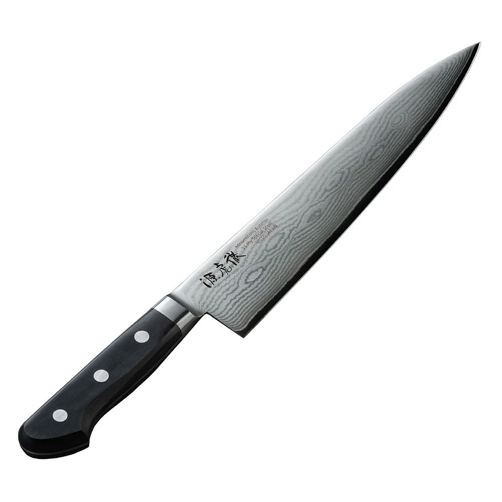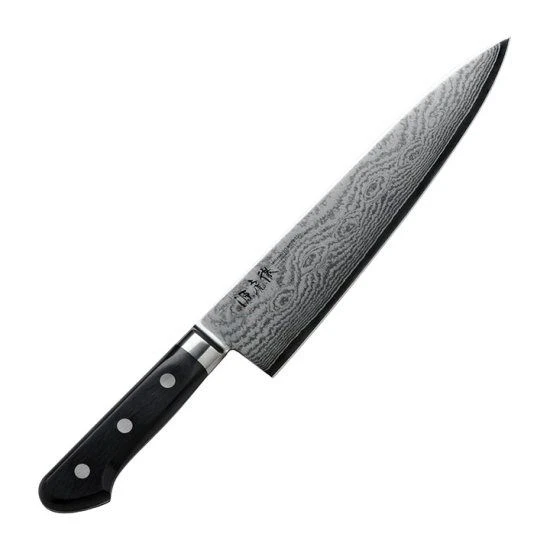 This Minamoto Kotetsu 24cm Chef Knife kitchen knife was born and raised in Seki a city of cutlery rich in nature. This range is made using 33 layers Damascus VG10 steel with unique forging process, which is making the beautiful and elegant wave of Damascus pattern.