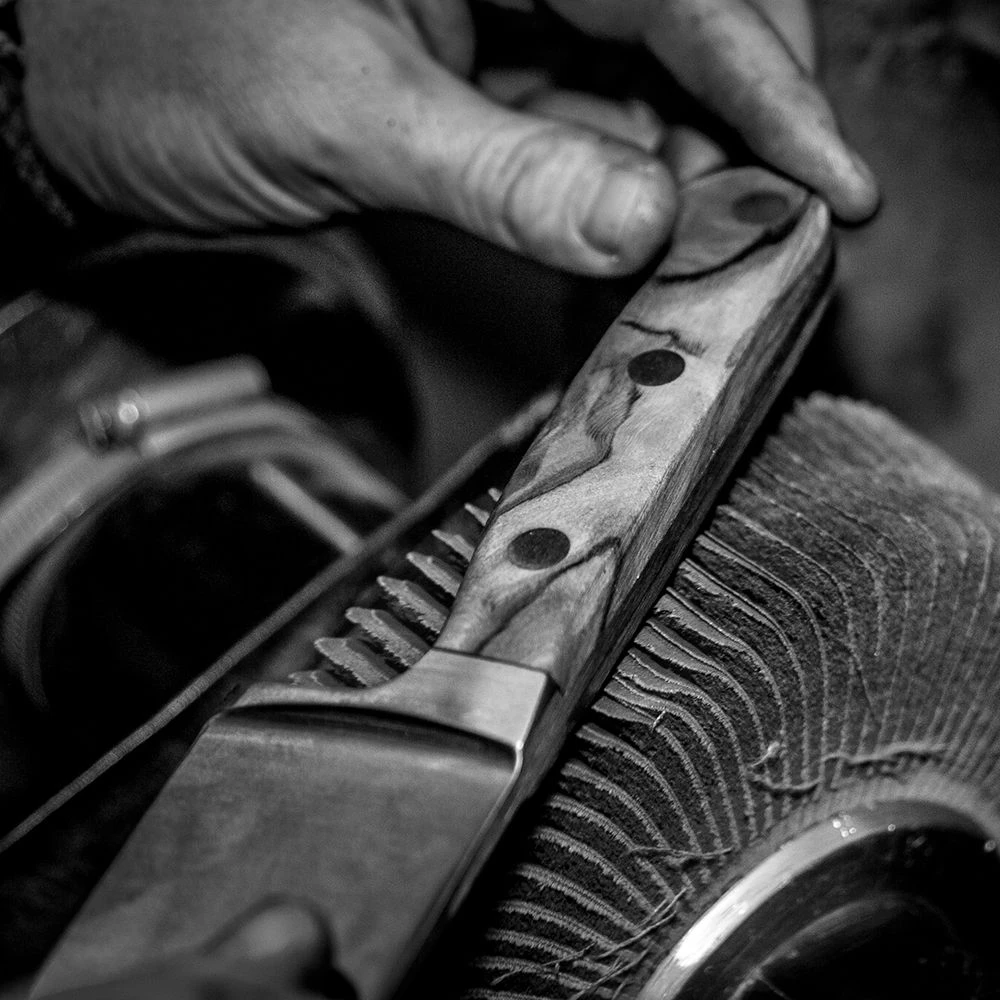 Samuel Staniforth ‘Chef’ range knives boast a traditional style of Sheffield knives. This includes the fully forged blade, forged by hand, also brass rivets are secured by hand which will permanently secure the handle to the tang. The chef range, features a round bolster which counter balances the knife to ensure it can be the perfect ally in the kitchen.