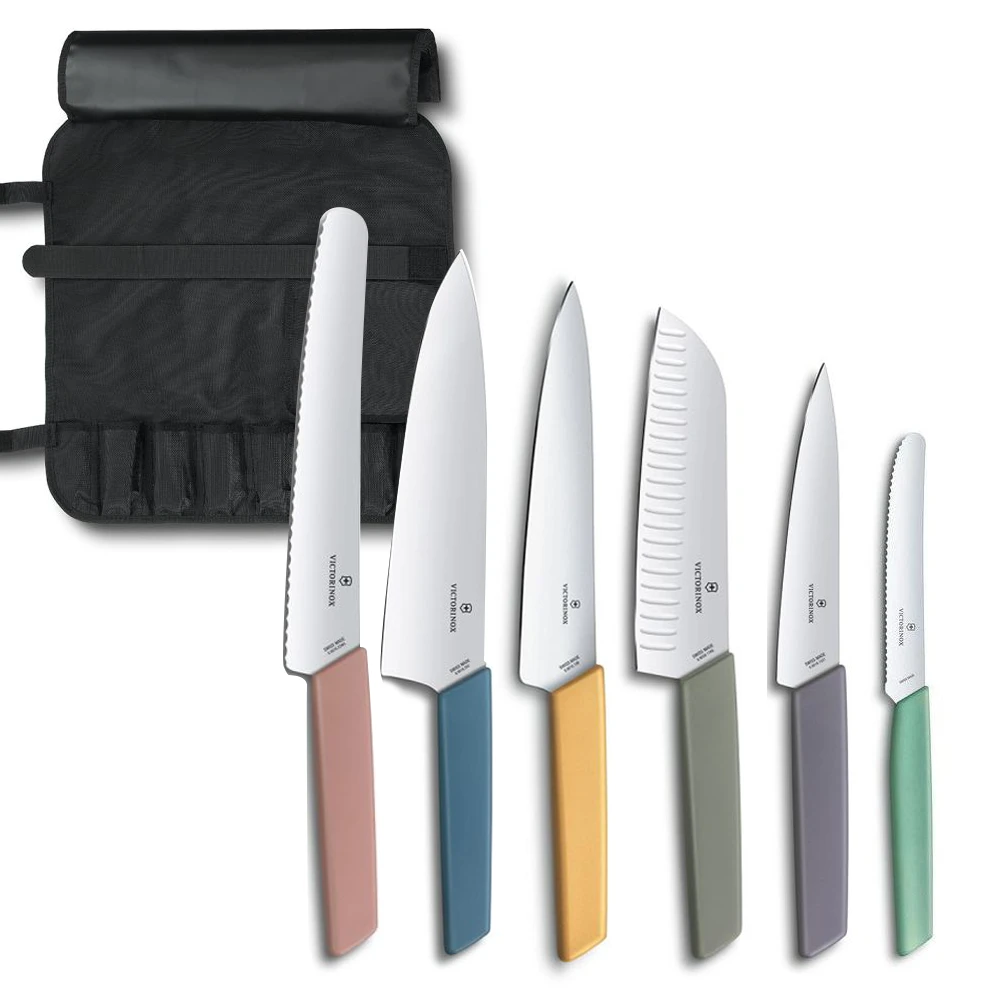 The Victorinox Swiss Modern Coloured Exclusive Case Roll Set adds a suave, sophisticated edge to any countertop.
