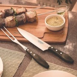 This Wusthof Crafter 2 Piece Knife Block Set was designed for the modern chef, who appreciates the workmanship and craft that goes into the creation of a quality knife. With smoked oak handles, brass rivets and thoughtful design features like half bolsters and full tang handles (which counter the weight of the blade for perfect balance). The reward is knives which are as functional as they are beautiful. With proper care and attention, this set will last decades.